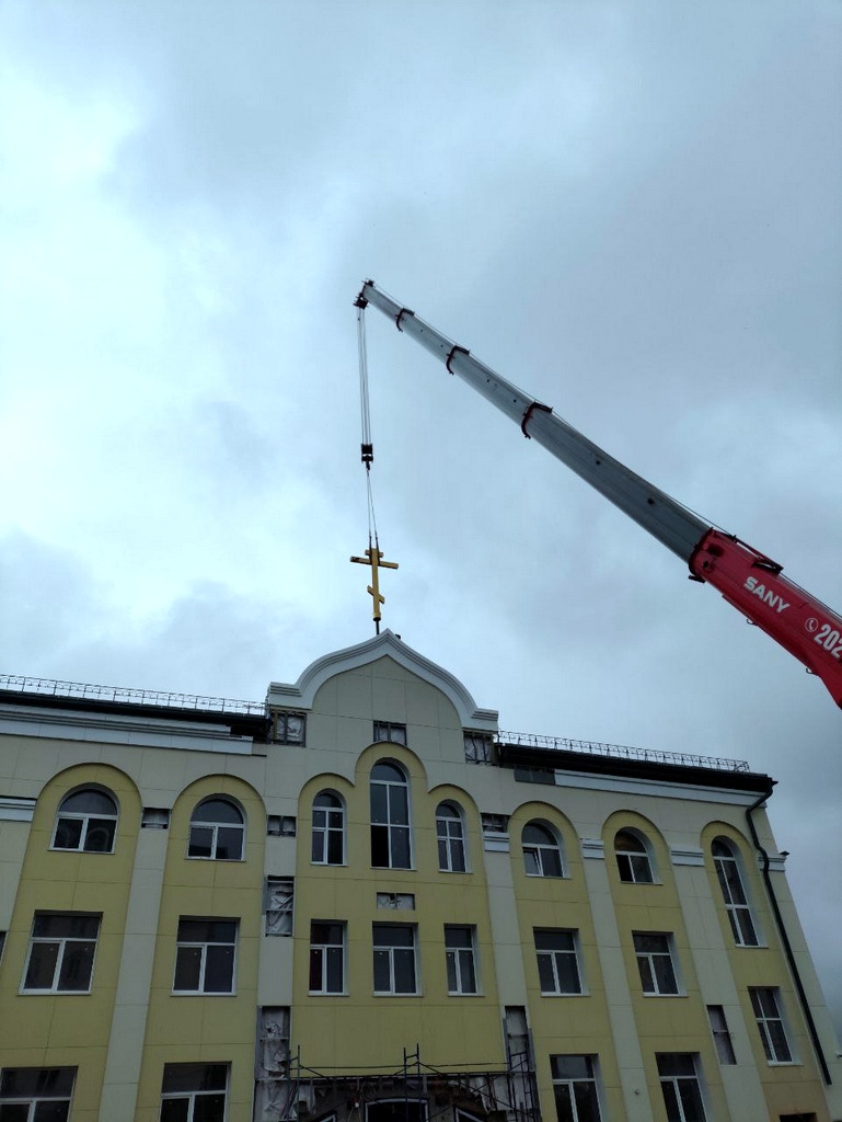 На здание Епархиального управления установлен крест. 11 августа 2025 г.